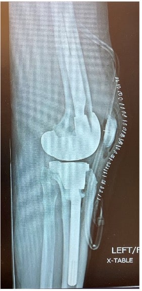 The 74-year-old patient with left TKA implanted two years ago (Figure 1) complained of persistent anterior knee pain, limited range of motion, and dissatisfaction. Given the patient’s severe dissatisfaction with his knee replacement, a revision knee arthroplasty was indicated for component malrotation and arthrofibrosis.